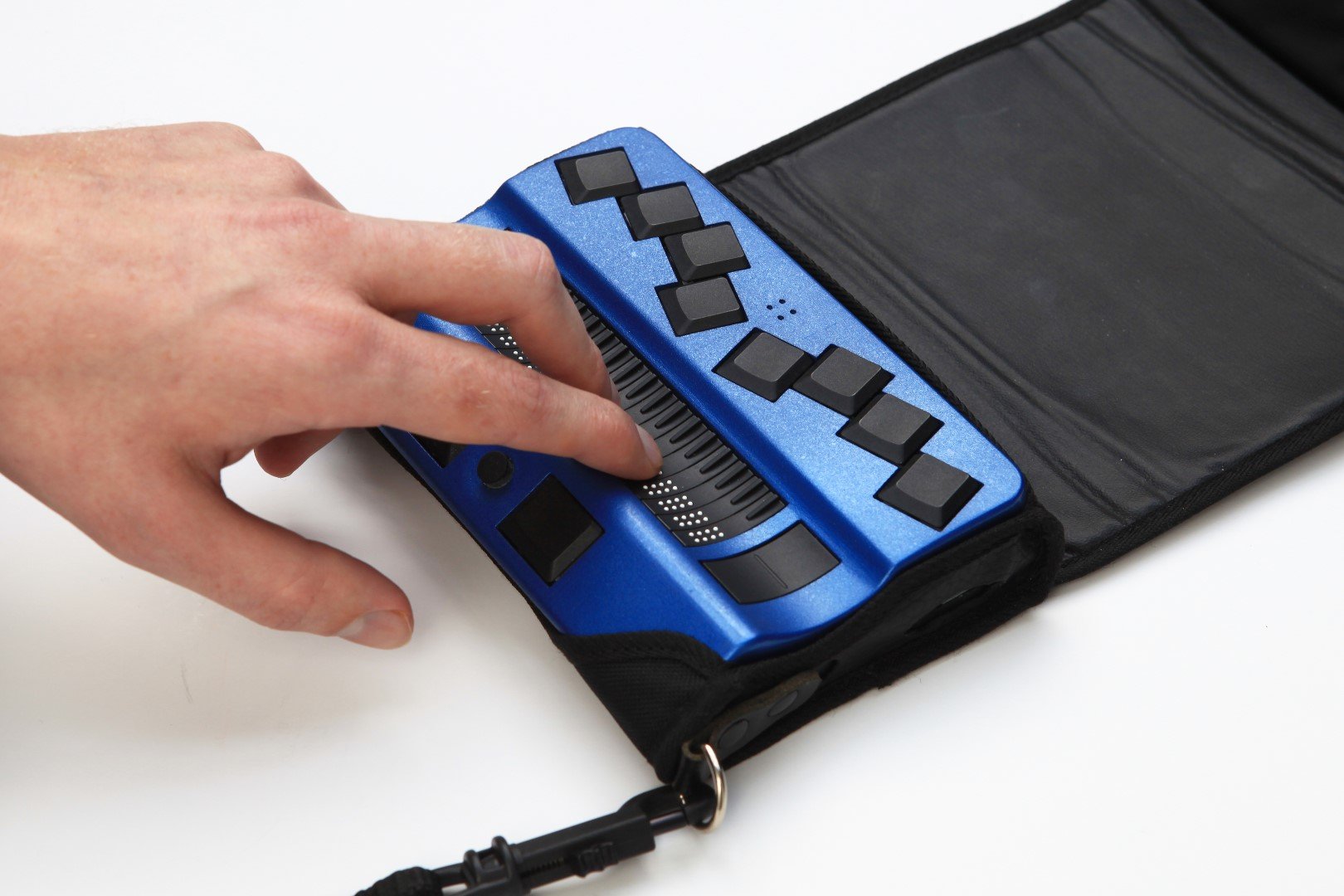 A Braille beviteli billentyűk úgy lettek elhelyezve, hogy Ön a lehető legkényelmesebb módon tudja megírni jegyzetét. A joystick, amely a vezérlők közepén helyezkedik el, kényelmesen elérhető még hüvelykujjal is